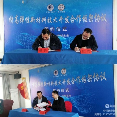 鞏義市恒銘金屬制品有限公司董事長與河南工業(yè)大學康克家博士上臺簽署合作協(xié)議。