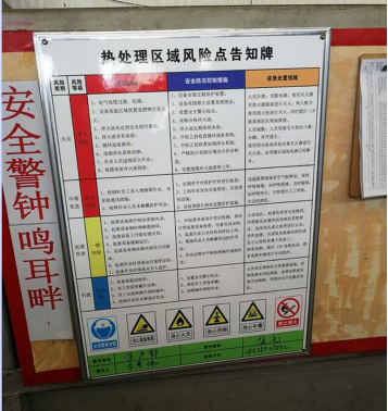 人員到車間現(xiàn)場(chǎng)觀摩學(xué)習(xí),查看企業(yè)“紅橙黃藍(lán)”風(fēng)險(xiǎn)點(diǎn)分布圖、風(fēng)險(xiǎn)管控措施清單和風(fēng)險(xiǎn)管控責(zé)任清單,詳細(xì)了解職業(yè)危害告知卡、崗位操作規(guī)程和應(yīng)急處置措施設(shè)置情況。